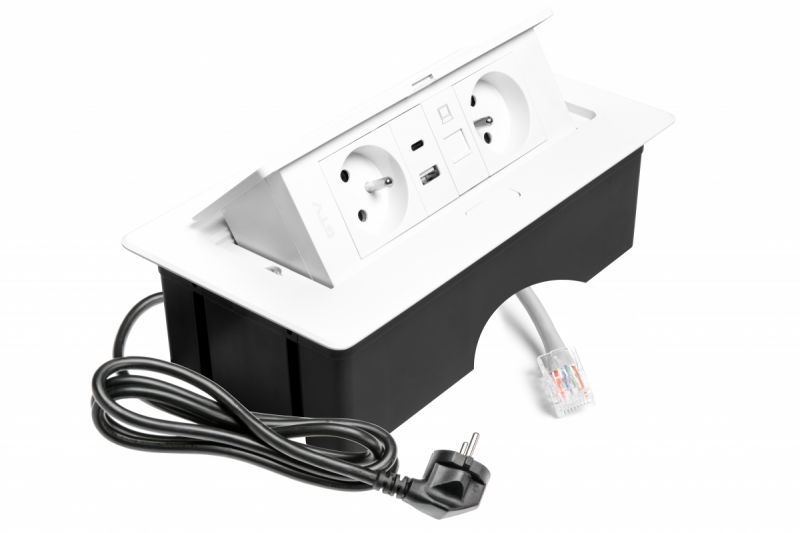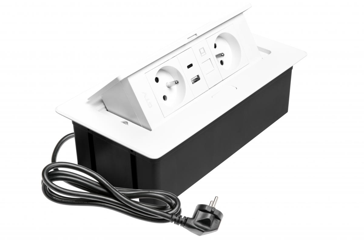 MULTISOFT nábytková zásuvka 2x zásuvka s uzemněním, USB A+C, RJ45, napájecí kabel se zástrčkou, bílá - Doplnkový sortiment
