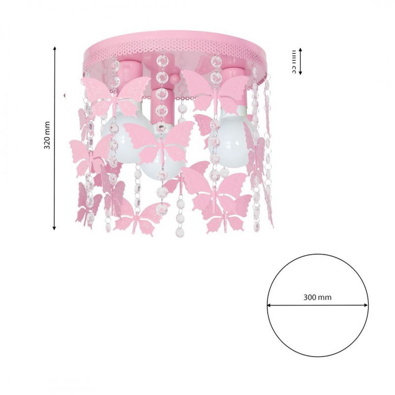 Lustry řady ANGELICA mají prostor pro tři světelné zdroje s maximálním příkonem 60 W. Celkový příkon nesmí překročit 180 W. Svítidla se závitem E27 jsou přizpůsobena světelným zdrojům s energetickými třídami od A++ do E a také LED žárovkám libovolné noci. Celková výška tohoto plafonu je 32 cm a jeho šířka je 30 cm. Modely této řady jsou vyrobeny z kombinace bezpečného kovu a akrylu. Svítidla ANGELICA jsou ideální do dětských pokojů, kde jsou jedním z hlavních prvků jejich výzdoby. Vybraný model je vhodné umístit na centrální místo místnosti, aby dobře osvětloval například dětský koutek. Dekorativní prvky v podobě třpytivých krystalů a okouzlujících motýlů potěší i tu nejvybíravější "mladou dámu". Při rozhodování o tomto modelu si můžete vybrat ze tří barevných provedení: šedé, růžové a bílé. Lustr od společnosti MiLAGRO je dodáván se zárukou výrobce, má certifikáty shody a také návod s komponenty potřebnými k jeho sestavení. " |