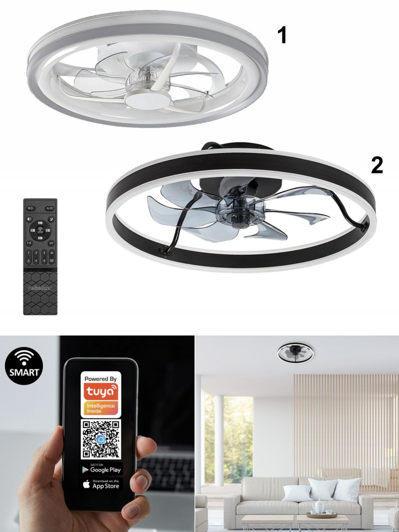 Moderné a praktické svietidlo ako súčasť ventilátora, má vstavaný LED svetelný zdroj, ktorý zaisťuje energeticky efektívnu prevádzku a dlhú životnosť. Svietidlo sa dodáva vrátane diaľkového ovládača a cez wi-fi je možné ho ovládať aj cez chytrý telefón alebo tabletom. Má mnoho funkcií ako je stmievanie, funkcia pamäte posledného nastavenia, časovač, nočné svetlo a iné. Rýchlosť ventilátora je nastaviteľná a jeho výkon je dostačujúci pre miestnosť 12M2. |