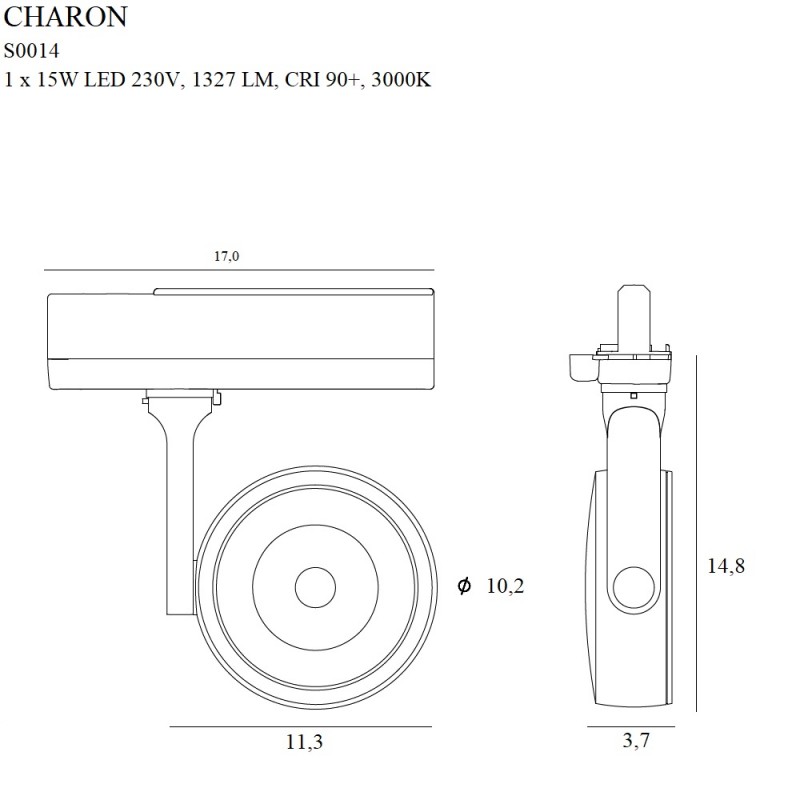 Příkon: 1 x 15W LED 230V, 1327 LM, CRI 90+, 3000K . Š: 11,3 cm, D: 3,7 cm, V: 14,8 cm, Ø: 3,5 cm, H: 3,7 cm, V: 3,5 cm, H: 3,5 cm, Ø: 3,5 cm, Ø: 3,5 cm, Ø: 3,5 cm, Ø: 3,5 cm: Hloubka: 10,2 cm, . Povrchová úprava/detailní úprava: černá/černá . Materiál/Materiál: kov, akryl Úhel svícení/úhel paprsku: 38° Třífázový adaptér/3fázový adaptér Sada transformátorů. Transformátor je součástí dodávky / trafo je součástí dodávky |