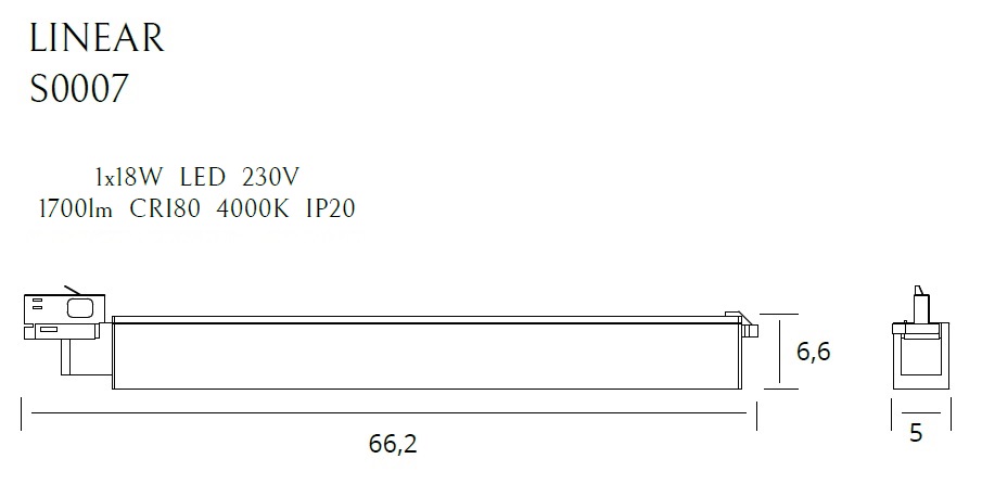 MAXLIGHT S0007 LAMPA DO SZYNOPRZEWODU LINEAR TRACK BLACK 18W 4000K - Lištovy, koľajnicový systém osvetlenia