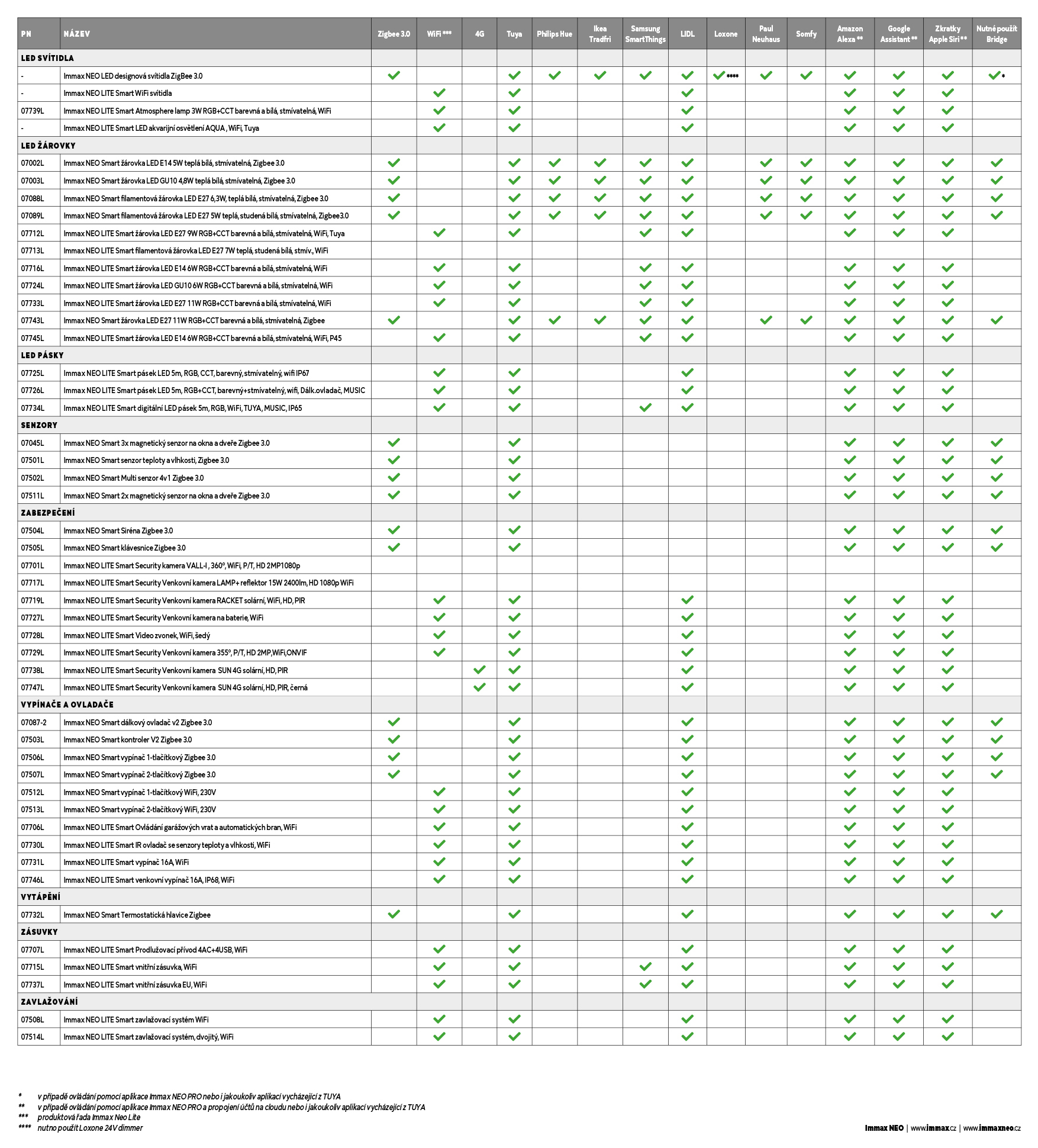 Systém Immax Neo je plně kompatibilní se systémem Philips HUE komunikující na platformě ZIGBEE 3.0. Kompatibilní také s iOS, Android, Amazon Alexa, Apple Siri zkratky, Google Assistant, Philips HUE, TUYA, Tahoma, Lidl, Ikea. Dálkový ovladač Zigbee 3.0 je součástí balení, a v případě potřeby lze také dokoupit samostatně.