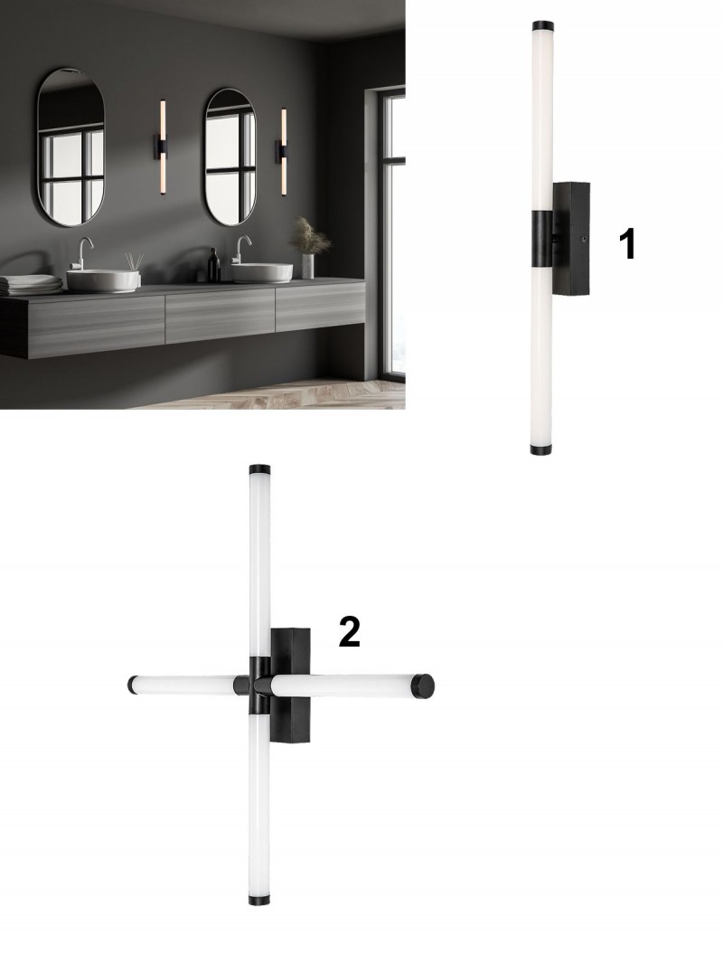 Moderné kúpeľňové svietidlá vyrobené z kovu a plastu. Kombinácia čiernej a bielej farby vytvorí zaujímavý prvok vo vašej kúpeľni. Svieti neutrálnou bielou farbou. |