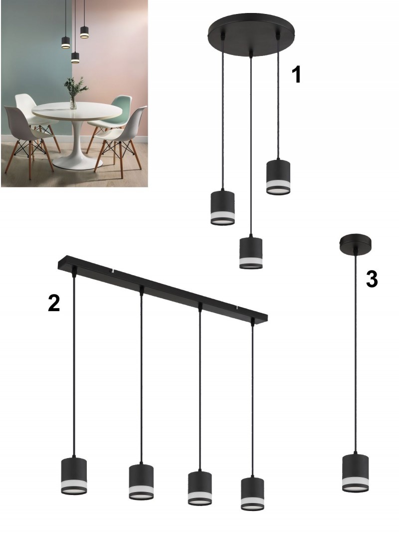 Moderné závesné svietidlá vyrobené z kovu v elegantnej matnej čiernej farbe s bielym plastovým krúžkom. Svietidlá sa dodávajú vrátane LED žiaroviek. Závit GX-53. Skvele doplní sadu bodových svietidiel Lucera. |