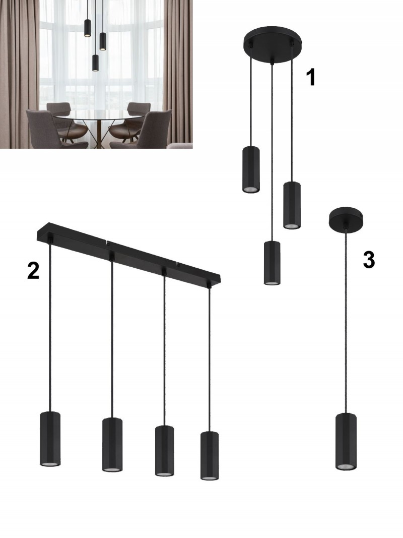 Štýlové závesné svietidlá vyrobené z kovu a hliníka v matnej čiernej farbe. Telo svietidla je kovové a tienidlo je hliníkové. So závitom GU10. Tieto moderné svietidlá je možné doplniť o šikovnú LED žiarovku a pomocou smartfónu meniť farbu alebo teplotu svietenia, stmievať ich a navodiť tak príjemnú atmosféru v interiéri. |