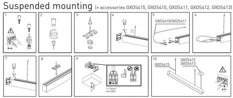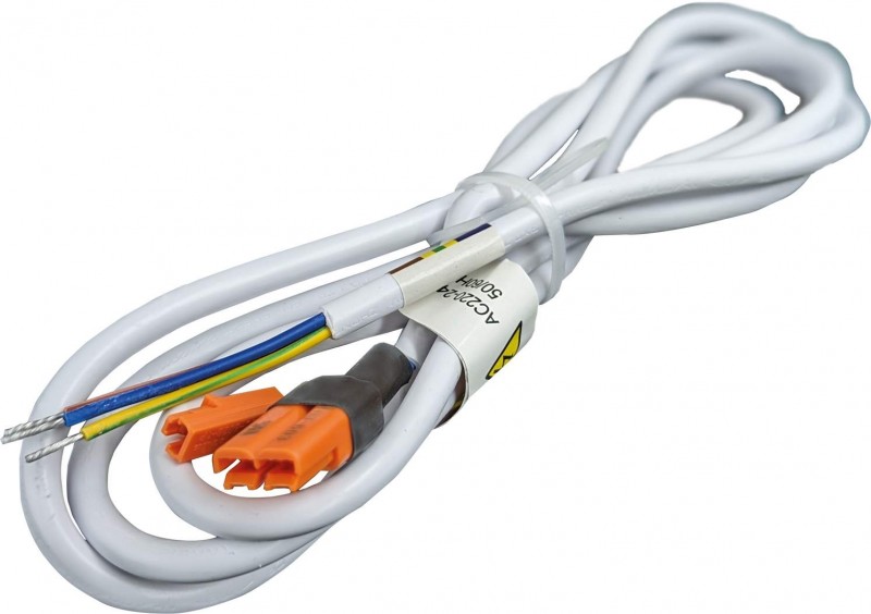 Bílý napájecí kabel zakončený konektorem. Délka kabelu 1,6 m. Určen pro přivedení napájení svítidel LINIK White při závěsné montáži. |
