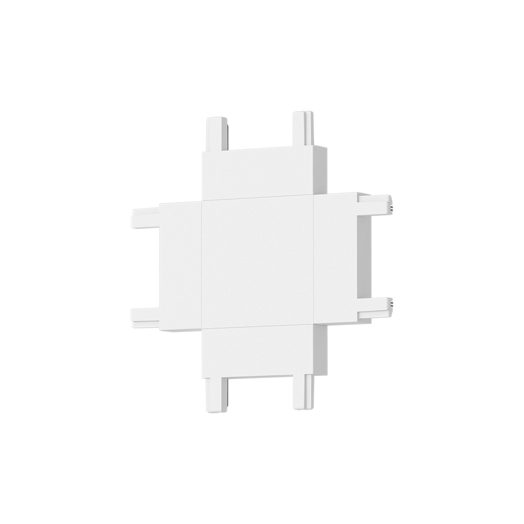 | Bílý kolejnicový konektor ve tvaru "+" nabízí možnost vedení instalace ve čtyřech směrech současně, což otevírá nové možnosti designu. Je vhodný pro rozsáhlé osvětlovací systémy, kde je požadováno optimální osvětlení více oblastí současně. | |