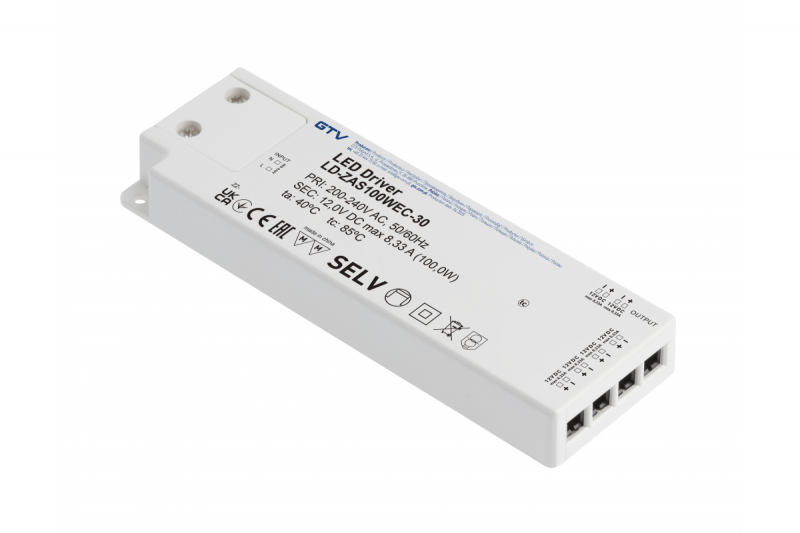 NAPÁJECÍ ZDROJ PRO LED SLIM EASY CLICK 12V,100W, vstup 220-240VAC, IP20, rozměr 190x62x21 mm s mini zesilovačem a kabelem - Napájacie LED zdroje - LED trafo