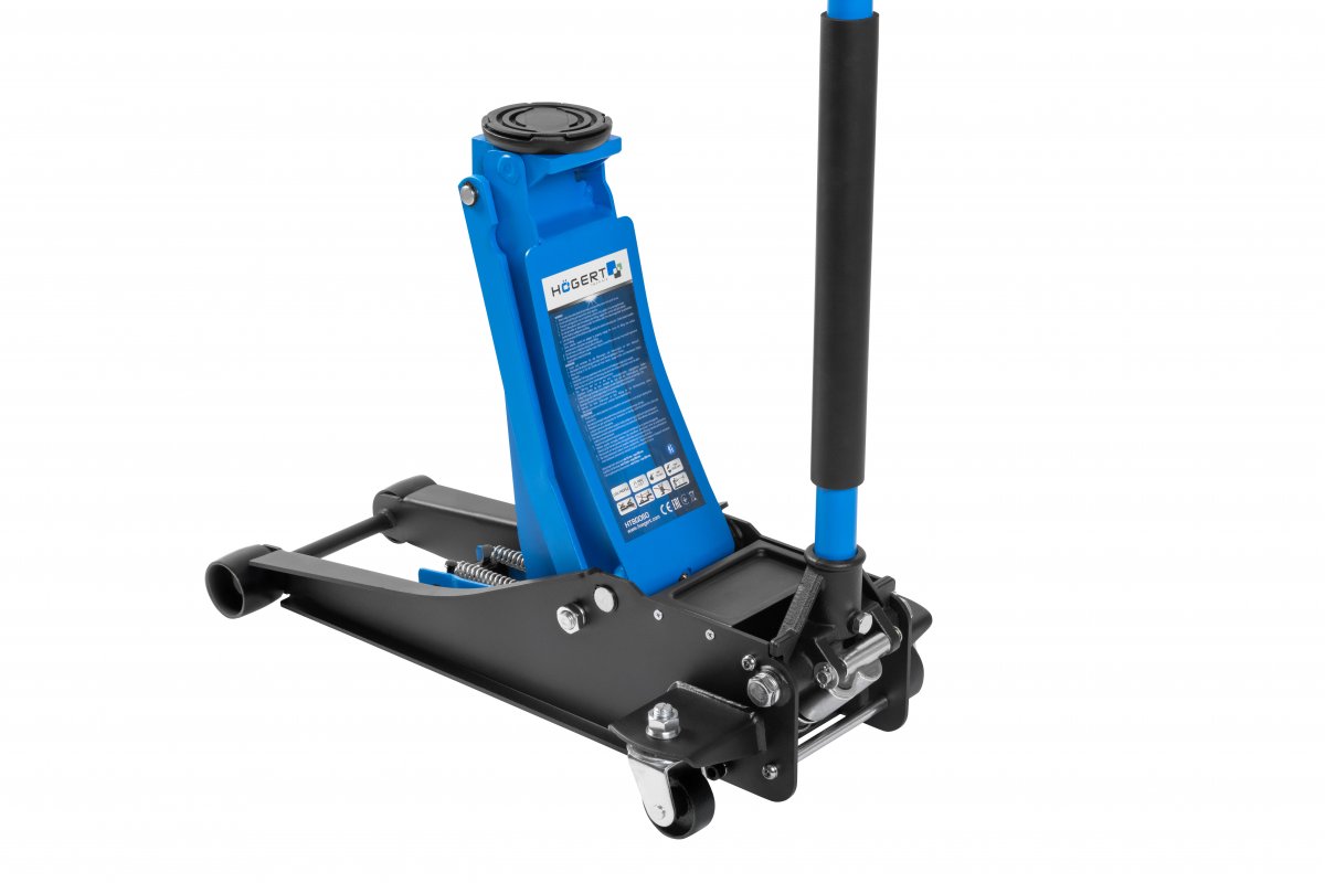 Hydraulický zvedák typu „žába“ s velkým rozsahem pracovní výšky. Umožňuje zvedat břemena do hmotnosti 2,5 T do výšky od 72 do 505 mm. Automobilový zvedák navržený pro vozy se sníženým podvozkem. Díky své robustní konstrukci a odolnému dvoupístovému hydraulickému válci zvedá vozidlo bez námahy a rychle, aniž by hrozilo jeho náhodné spadnutí. Odolné přední přepravní kolečka a zadní otočná kolečka zajišťují pohodlný přístup k vozidlu a stabilní umístění kdekoli. Vestavěný ventil proti přetížení chrání před překročením maximální nosnosti a prodlužuje životnost zařízení. Silnostěnná ocel a pevné svary zaručují dlouhou životnost i při intenzivním používání.