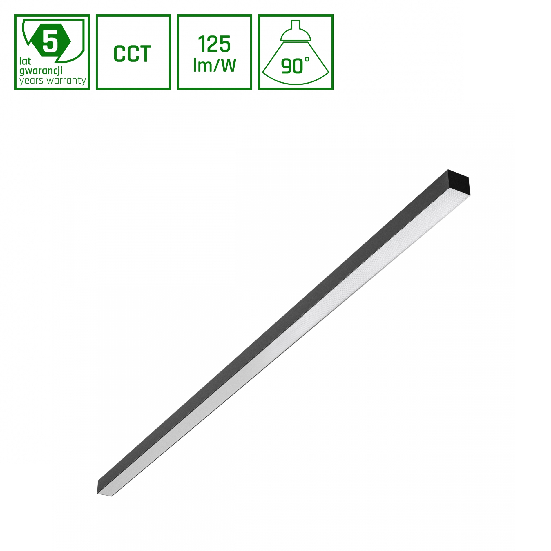 ALLDAY BASIC 50W 3CCT 230V 90DEG IP20 1503x42x37mm BLACK PR UGR<19 5Y WARRANTY - Stropné a nástenné