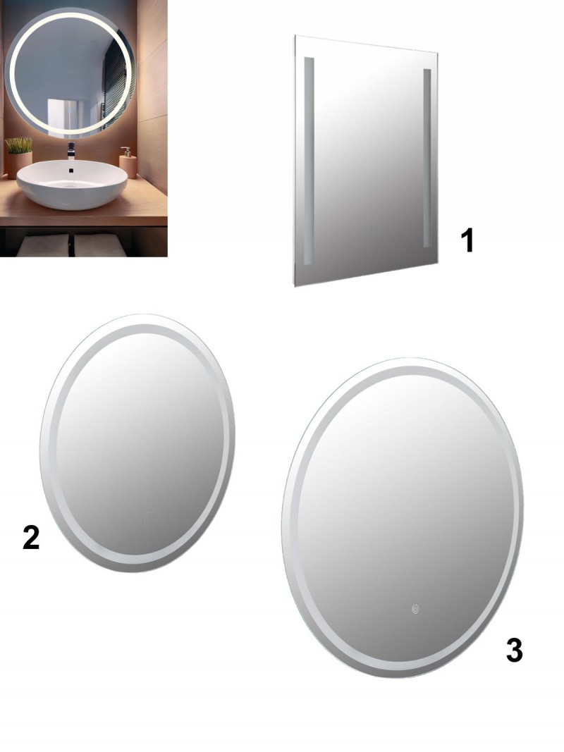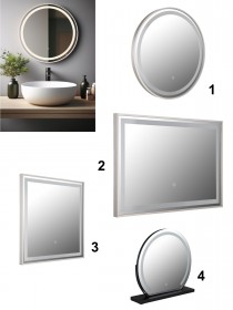 Zrkadlo so vstavaným LED osvetlením. Má funkciu pamäte posledného nastavenia, dotykový stmievač a vypínač. IP44, vhodné aj do vlhkých priestorov ako je kúpeľňa alebo WC. |