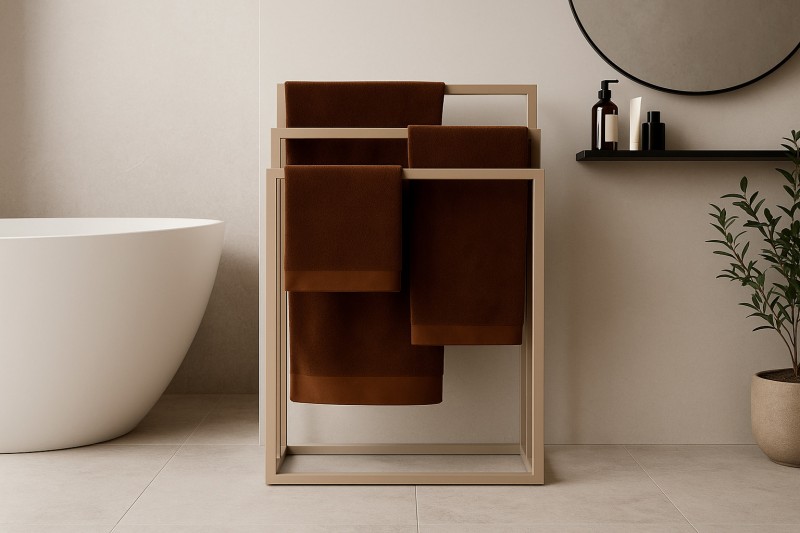 Harmonie a pořádek v koupelněKaždý den po koupání končí ručníky na radiátoru, židli nebo dveřích - v důsledku toho schnou nerovnoměrně a koupelna vypadá nepřehledně. Věšák na ručníky KS-52 TOWEL HOLDER III z řady KAJA Home tento problém odstraňuje, protože nabízí prostor pro několik ručníků najednou. Díky trojitému provedení má každý ručník svůj vlastní prostor, což zajistí, že rychle uschne a zůstane svěží po celý den. Je ideální pro rodiny, páry nebo lidi, kteří si cení pohodlí - jeden věšák stačí k tomu, abyste měli všechny ručníky po ruce a připravené k použití. Moderní design, který se hodí do vašeho interiéruJednoduchá, kovová konstrukce v elegantní béžové barvě zapadá do trendu minimalistických a moderních interiérů. Trojitá ramena nastavená v různých výškách nejen zvyšují funkčnost, ale také dodávají věšáku lehký geometrický charakter. Díky rozměrům 85 cm na výšku, 60 cm na šířku a 20 cm do hloubky se věšák hodí do prostorných i menších koupelen. Představte si sami sebe po ránu: z horní úrovně sáhnete po suchém ručníku, zatímco dole visí ručníky pro zbytek rodiny. Takové řešení je nejen pohodlné, ale také esteticky úhledné, což každý den lahodí oku. Odolnost a všestranné využitíRozhodnete-li se pro praktický trojitý koupelnový věšák, zvolíte výrobek vyrobený s maximální péčí a důrazem na detail. Robustní kov zaručuje odolnost na dlouhá léta a stabilní základna zajišťuje bezpečné používání i při plném zatížení. KS-52 je však více než jen organizér na ručníky - skvěle se hodí také do ložnice nebo šatny, kde může sloužit k zavěšení oblečení, přikrývek nebo koberců. Jedná se o multifunkční kousek, který v sobě spojuje estetiku a praktičnost. V řadě KAJA Home najdete i další modely, díky nimž si můžete vytvořit ucelenou sadu, která bude ladit se stylem vašeho domova. Postarejte se o funkční pořádek v koupelně a vyberte si KS-52 VĚŠÁK NA RUČNÍKY III - stylový a praktický doplněk, který vám usnadní každodenní život. Objednejte si jej ještě dnes a přesvědčte se, že malá změna může do vašeho interiéru přinést více pohodlí a elegance!" |