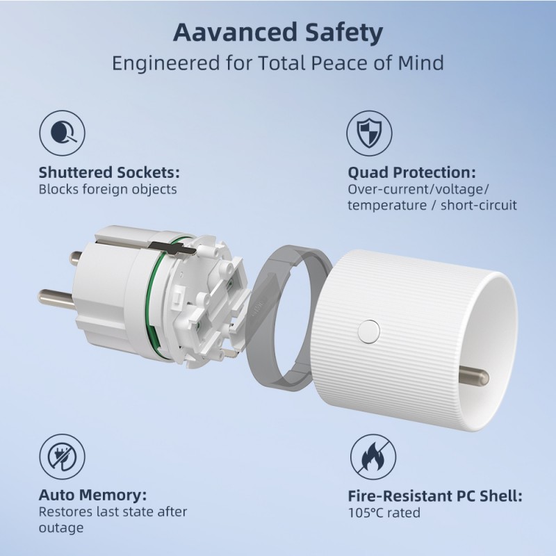 Smart vnitřní zásuvka THIN s kolíkem, Immax NEO, typ E, WiFi - Zásuvky