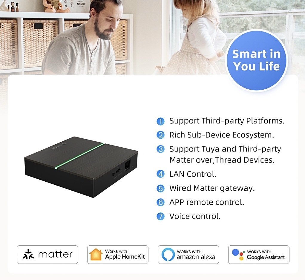 Technická specifikace: Obsah balení: chytrá brána, uživatelský manuál, napájecí zdroj, LAN kabel, napájecí kabel |