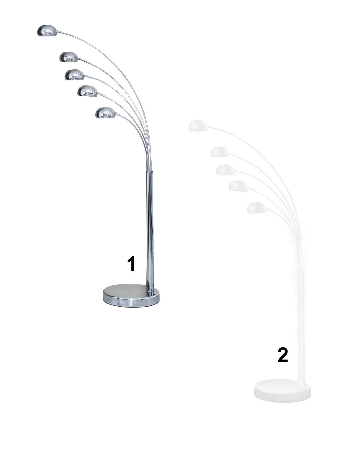 Táto lampa s piatimi ramermi vystreľujúcimi do priestoru bude zaujímavým prvkom do vášho moderného interiéru. Je vyrobená z kovu s podstavcom z mramoru, ktorý zaisťuje jej stabilitu. Vyrába sa v dvoch farebných variantoch - v bielej a chrómovej farbe. So závitom E14. Žiarovky nie sú súčasťou svietidla a je nutné ich dokúpiť zvlášť. |