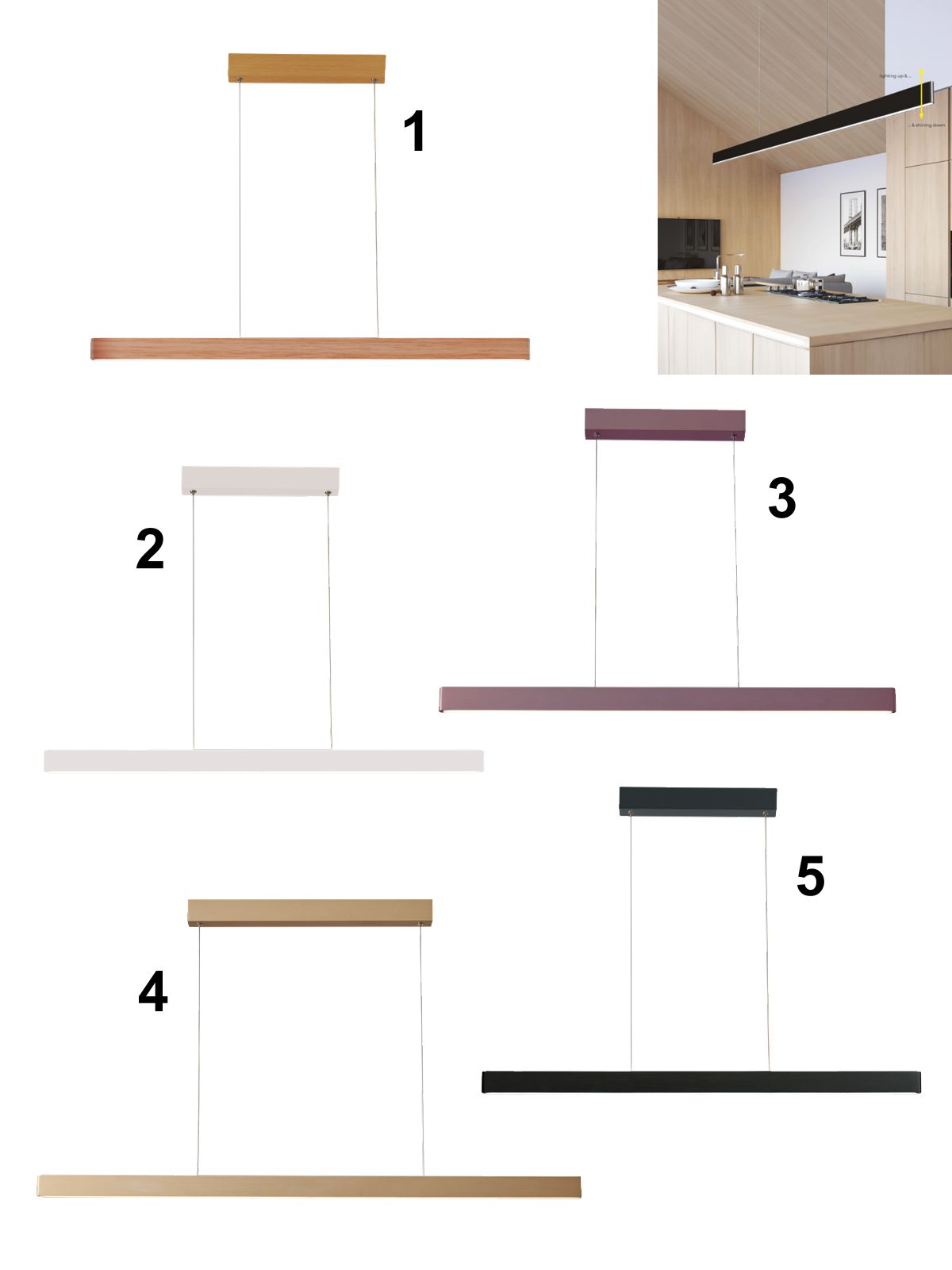 Moderné lustre vhodné do kuchyne nad pracovný ostrovček alebo do jedálne nad jedálenský stôl. Sú vyrobené z hliníka, so silikónovým tienidlom. Vyrába sa vo viacerých farebných dekoroch. Svieti teplou bielou farbou a je možné ich stmievať. |