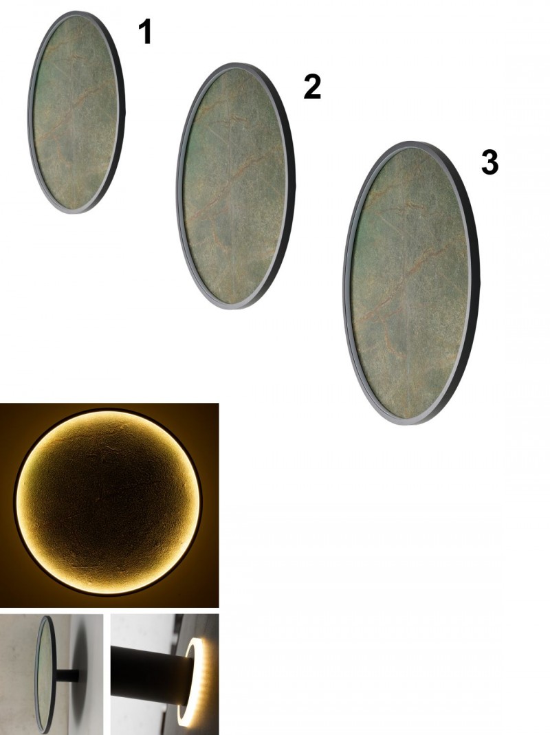 Štýlové nástenné svietidlá vyrobené z hliníka, kameňa a silikónu a akrylu. Svieti teplou bielou farbou. LED zdroj je zabudovaný a nie je možné ho meniť. |