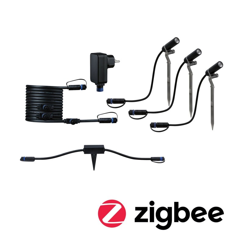 Plug & Shine set Smart Home Zigbee 3.0 LED bodové zahradní světlo Plantini IP65 3000K 3x2W 21VA antracit - PAULMANN - Záhradné svietidlá