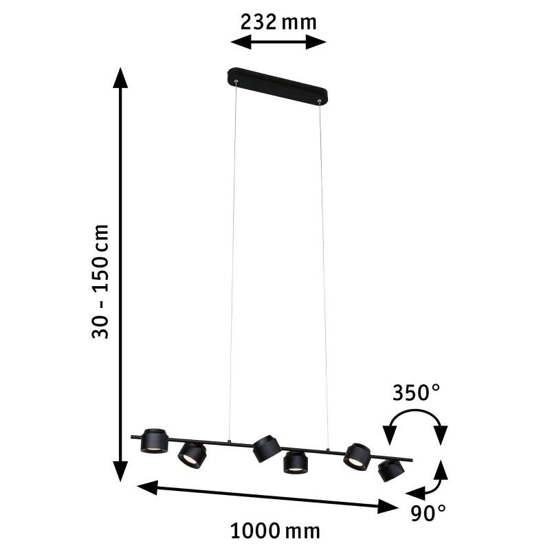 LED závěsné svítidlo Smart Home Zigbee Puric Pane 6x6W černá - PAULMANN - Moderné svietidlá