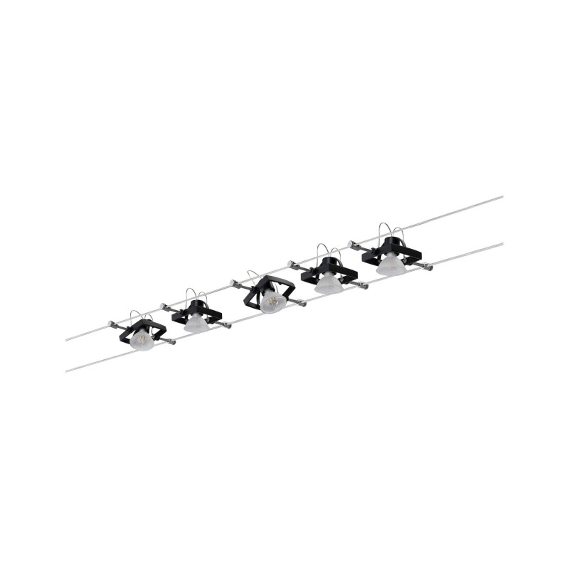 Lankový systém Mac II černá mat 5 spotů bez zdroje světla, max. 10W GU5,3 - PAULMANN - Lankové svietidlá