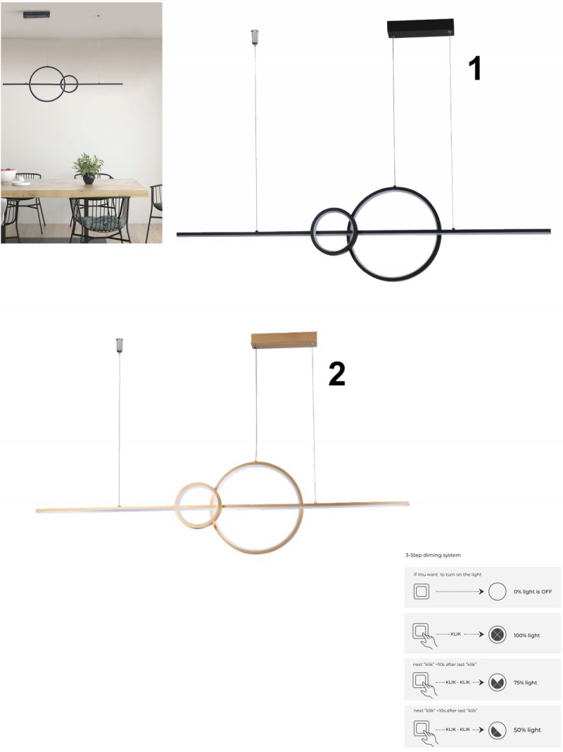 Svietidlo Sara 3 step DIMM je dizajnové závesné svietidlo vyrobené z hliníka a silikónu. Svieti teplou bielou farbou a je možné ho stmievať vypínačom na stene. - jedno kliknutie - 100% svietivosť |