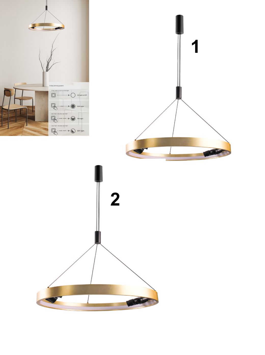 Dizajnové závesné svietidlo vyrobené z hliníka a silikónu. Svieti teplou bielou farbou a je možné ho stmievať vypínačom na stene. |