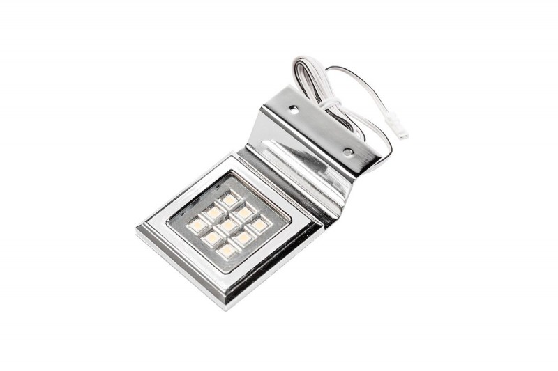 Čtvercové LED svítidlo pro kalderonovou skříň, 12V, 9 led, teplá bílá, pochromováno - Nábytková svietidlá