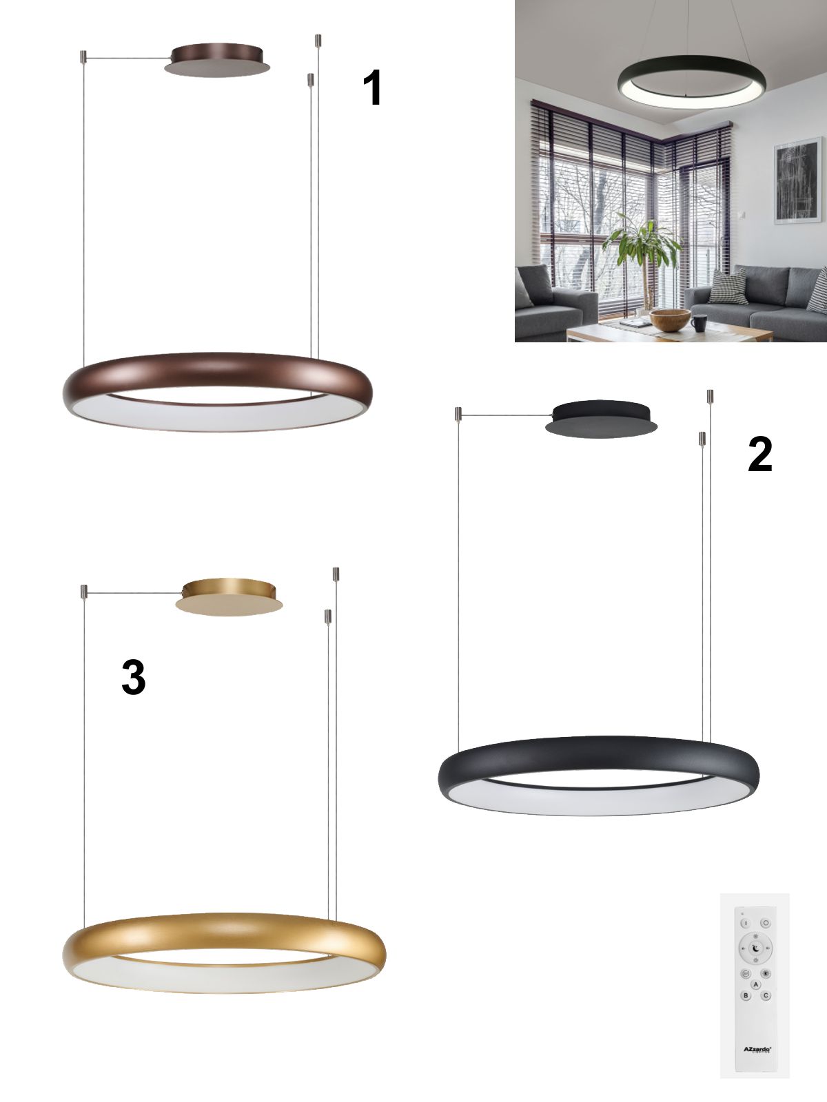 Dizajnové závesné svietidlá vyrobené z hliníka a plastu. Dodáva sa vrátane diaľkového ovládača, ktorým je možné svietidlo stmievať alebo nastaviť teplotu farby svietenia na 3000K-6500K. Hodí sa do všetkých moderných interiérov. |