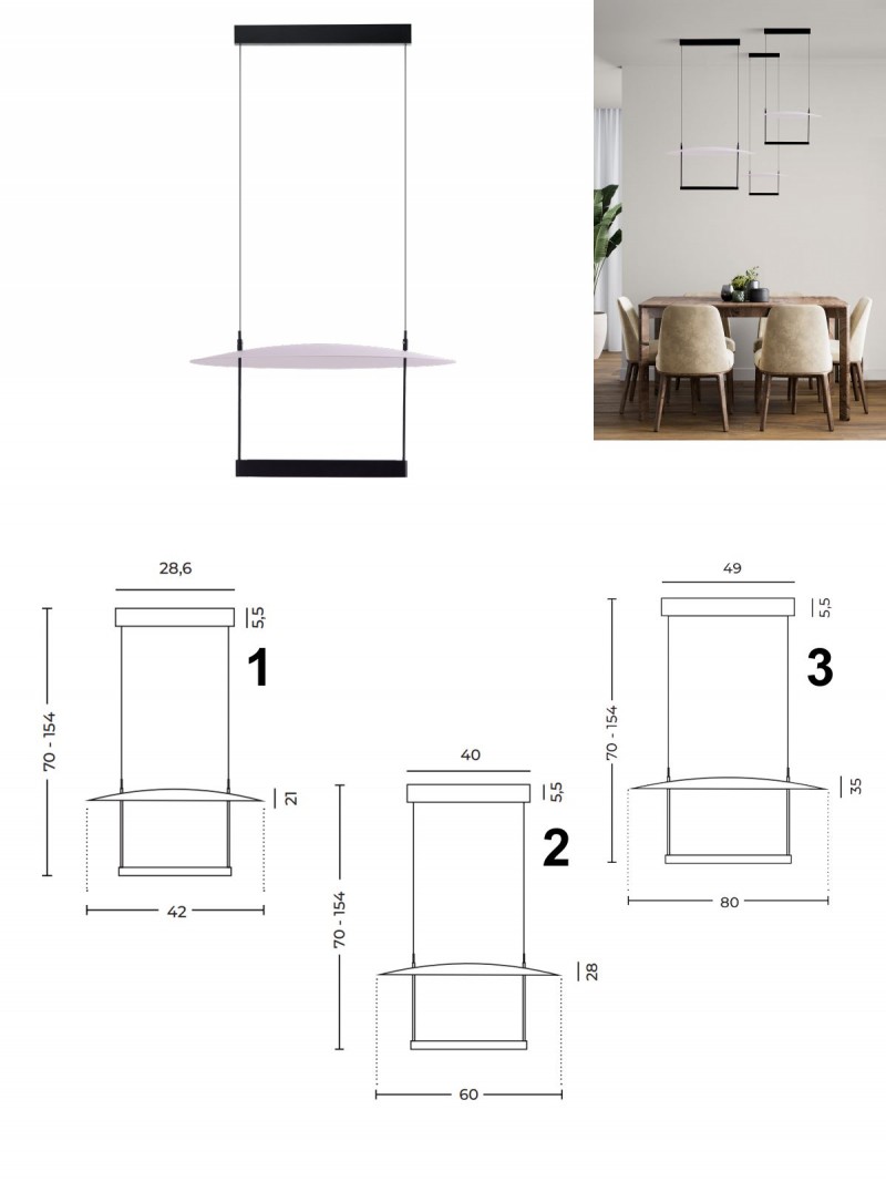 Dizajnovo zaujímavé závesné svietidlá Portofino LED sú vyrobené z hliníka v kombinácii čiernej a bielej farby. Svieti teplou bielou farbou, čo v interiéri navodí príjemnú atmosféru. LED zdroj je zabudovaný a nie je možné ho meniť. Skvele sa bude hodiť do vášho moderného interiéru. Na výber máte z troch veľkostí. |