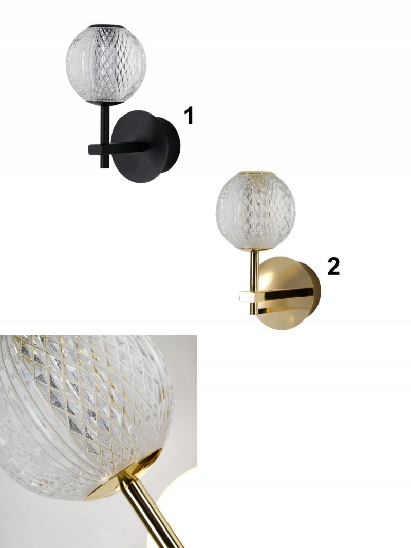 Nástenné svietidlá vyrobené z hliníka a akrylu. LED zdroj je zabudovaný a nie je možné ho meniť. Svieti teplou bielou farbou. |