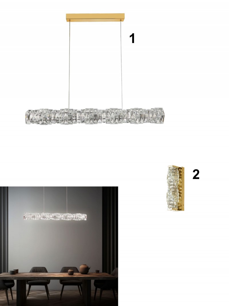 Moderní křišťálová svítidla Florence LED jsou vyrobena z hliníku a křišťálu ve zlaté a čiré barvě. LED zdroj svítidla je zabudovaný a není možné ho měnit. Skvěle se hodí do obývacích pokojů, kuchyní a jídelen, ale také předsíní. |