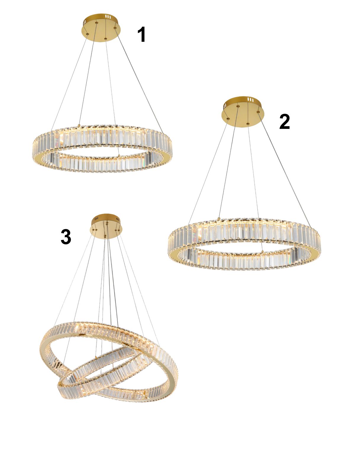 Spark DIMM gold sú závesné svietidlá vyrobené z hliníka a krištáľu. Zlatá farba základne pôsobí v interiéri veľmi elegantným dojmom. Svietidlá svietia teplou bielou farbou a sú stmievateľné. |