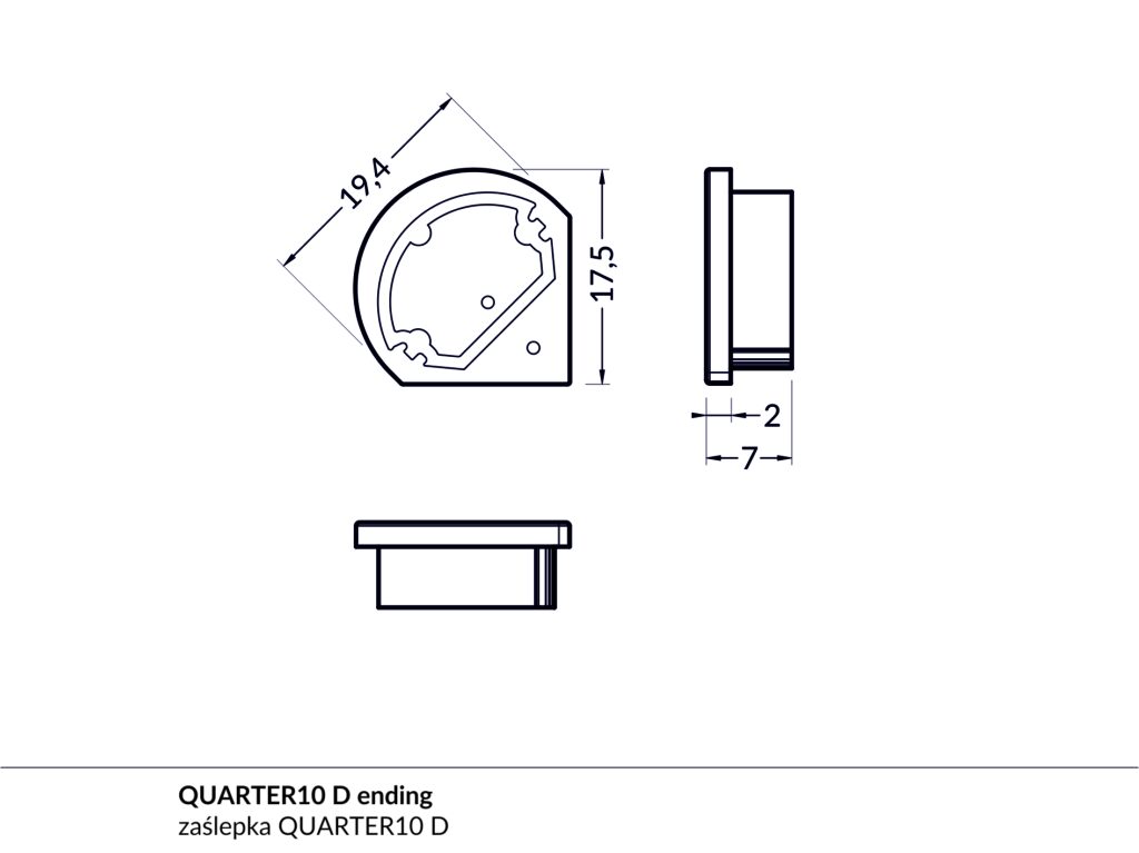 Koncovka WIRELI QUARTER10 D šedá, pár - Hliníkové LED profily