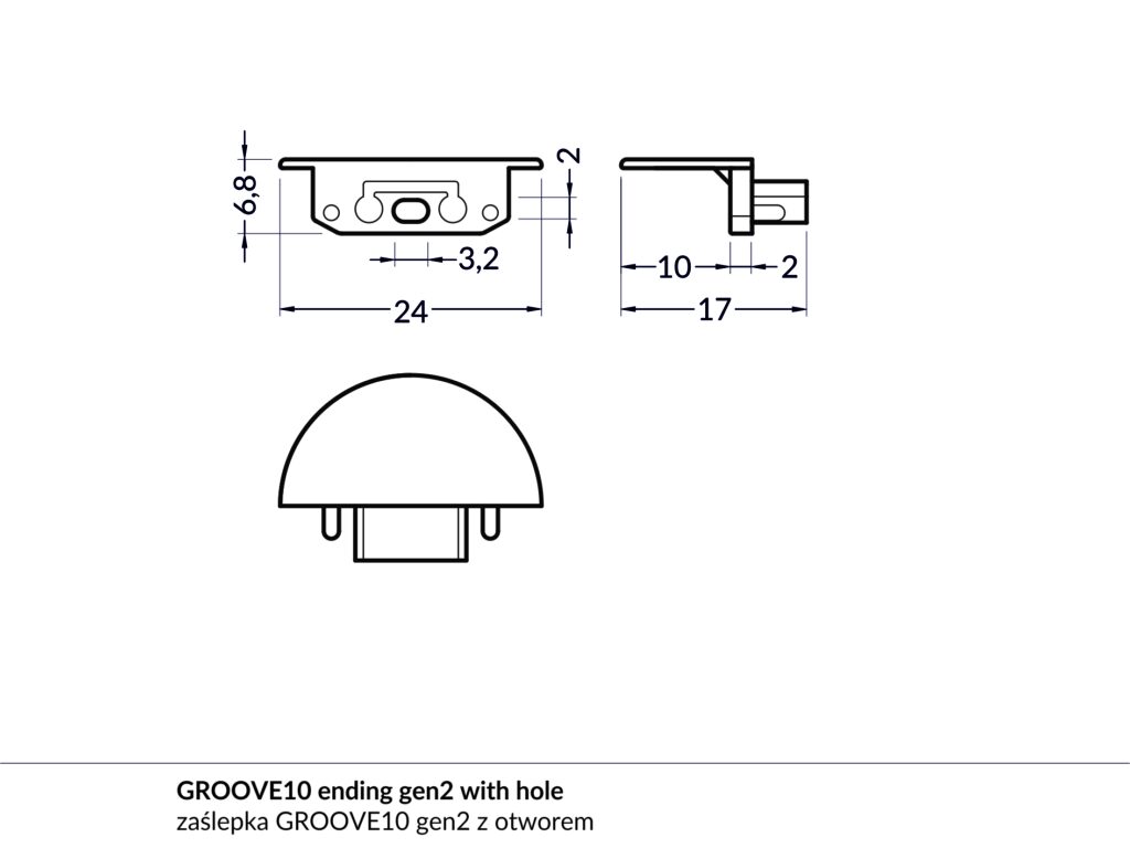 Koncovka WIRELI GROOVE10 černá půlkulatá s otvorem, pár - Hliníkové LED profily