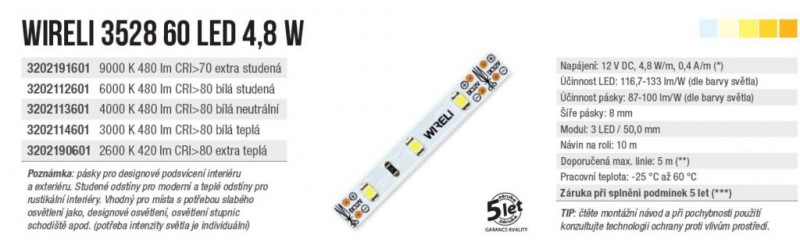 LED pásik značky WIRELI s vysokou kvalitou a dlhou životnosťou.