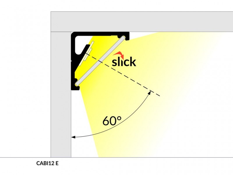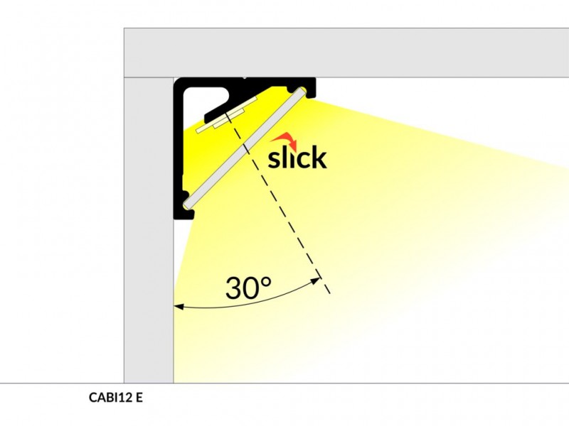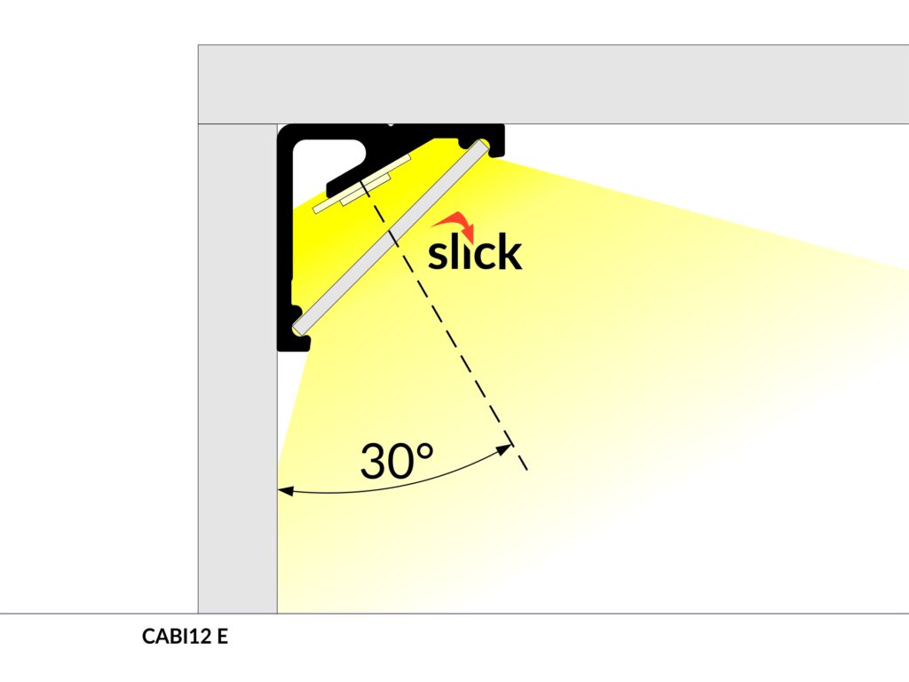 Profil je možné namontovať ako rohový profil a v závislosti od orientácie môže svietiť pod uhlom 60° alebo 30°.