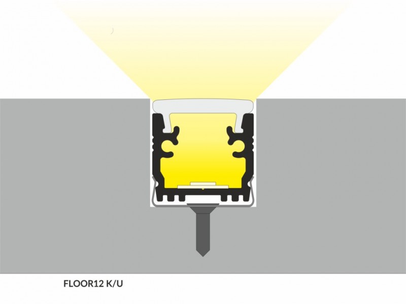 Robustný profil s difúzorom pre svetelné línie v podlahách, dlaždiciach alebo iných drážkach.