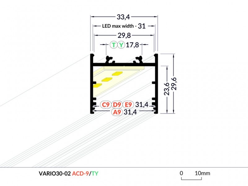 Profil WIRELI VARIO30-02 hlíník surový, 2m (metráž) - Hliníkové LED profily