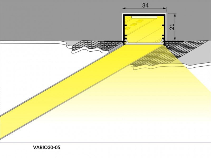 Profil prispôsobený na upevnenie do omietky alebo sadrokartónu.
