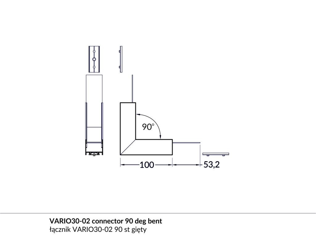 Spojka rohová WIRELI VARIO30-02 - 90° VERTIKÁLNÍ bílý komaxit, ks - Hliníkové LED profily