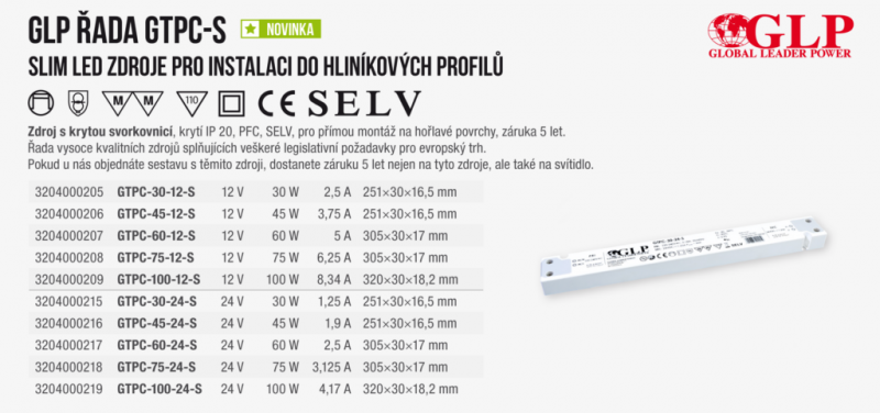 Zdroj napětí 24V 60W 2,5A IP20 SLIM GLP typ GTPC-60-24 S -