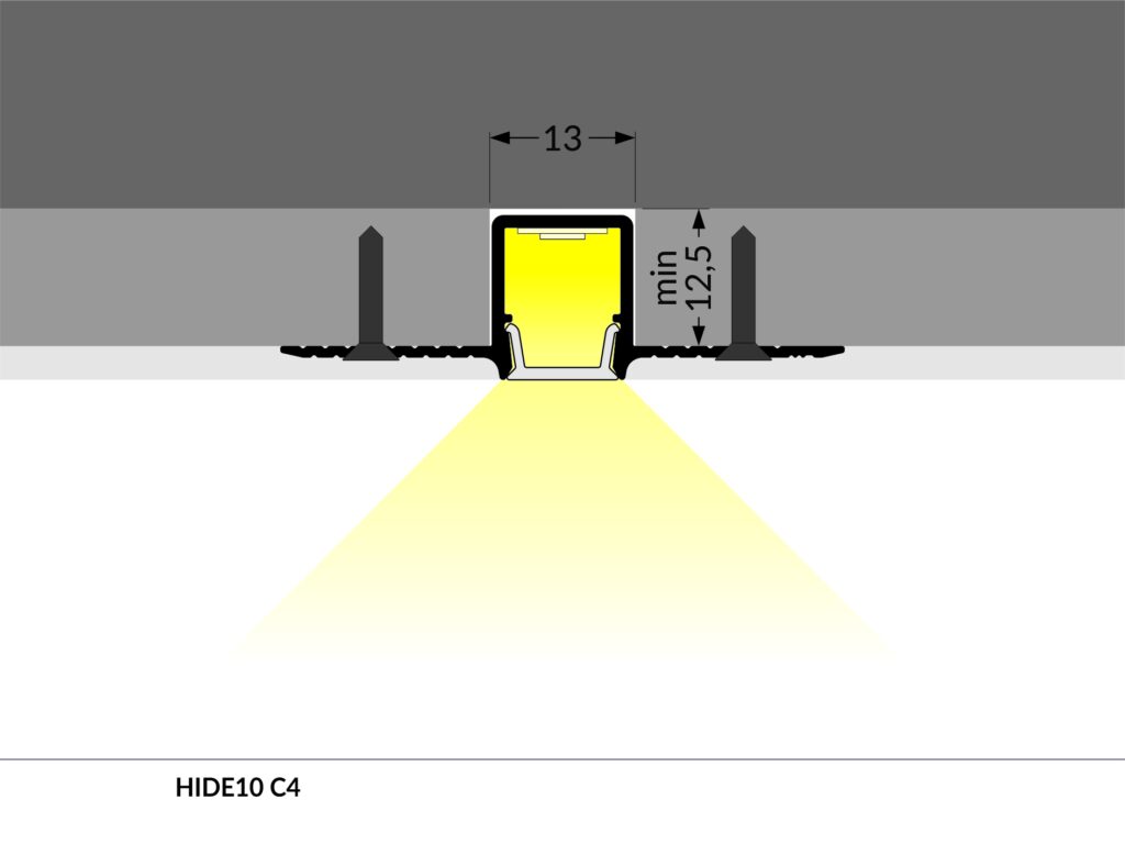 Profil na zabudovanie do omietky alebo sadrokartónu.