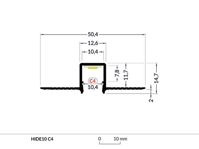 Profil WIRELI HIDE10 C4 stříbrný elox, 2m (metráž) - Hliníkové LED profily