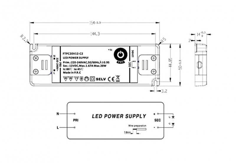 Zdroj napětí 12V 20W 1,67A IP20 POS POWER typ FTPC20V12 C2 - Napájacie LED zdroje - LED trafo