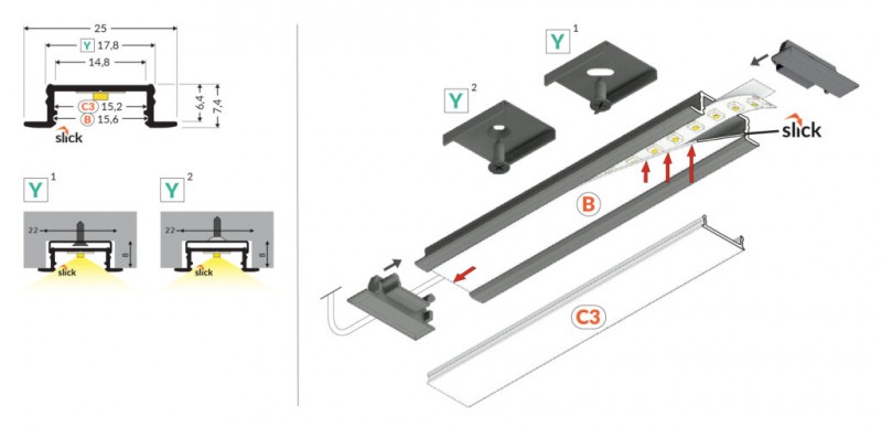 LED profil GROOVE14 umožňuje vloženie pásu so šírkou až 14 mm.