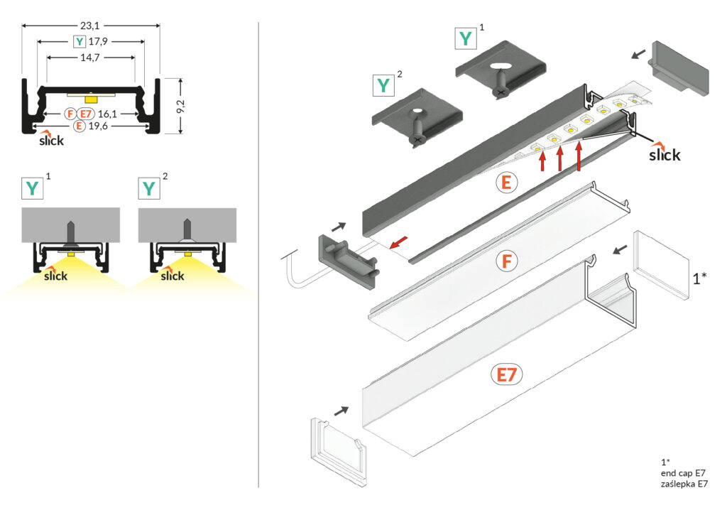 Univerzálny profil so širokou škálou montážneho príslušenstva a rôznych typov difúzorov. Jednoduchá práca a profesionálny vzhľad.