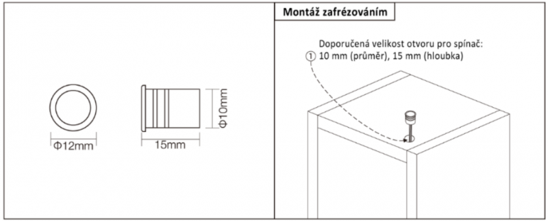 Dotykový vypínač ON/OFF kovový 60W (k zafrézování) -