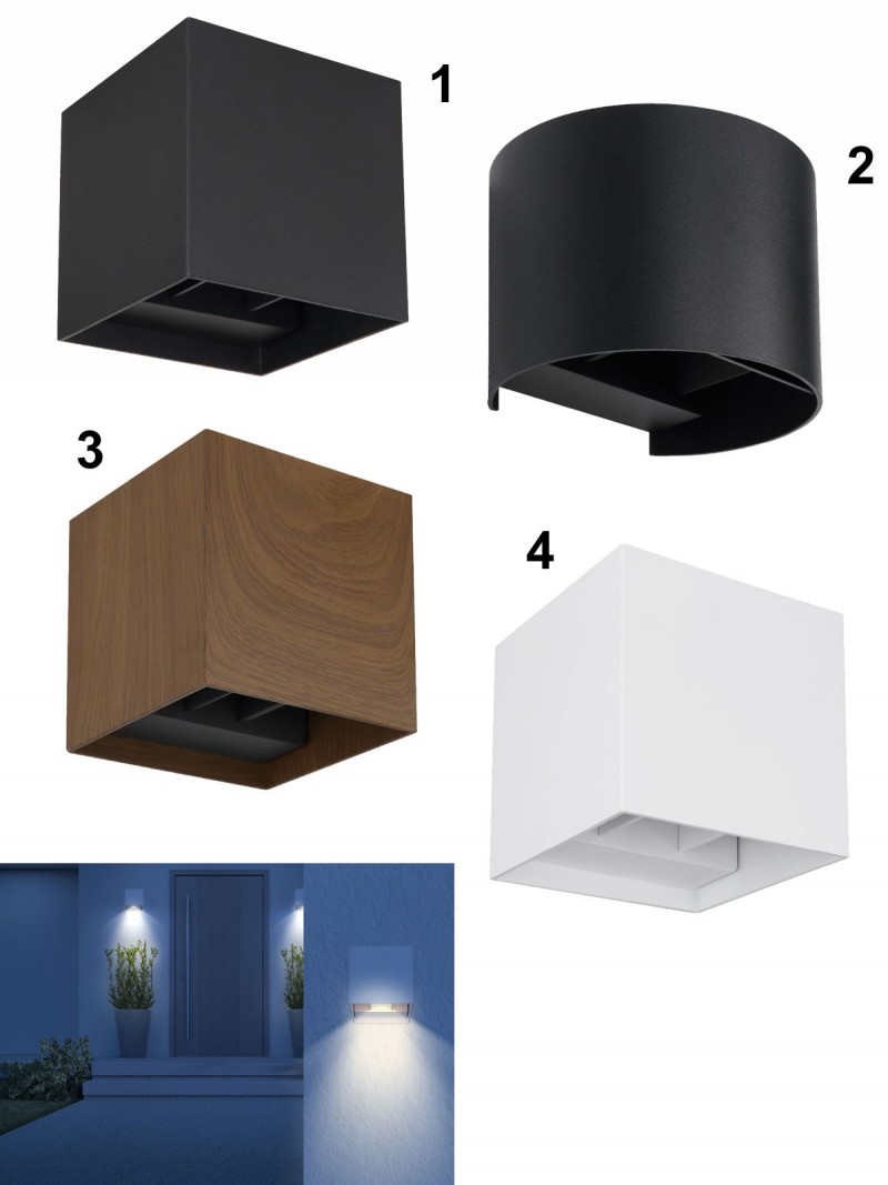 3. GL-34168W Venkovní svítidlo hliník, imitace tmavého dřeva, svítí směrem: nahoru a dolů, IP54, nastavitelný světelný kužel, Dx?xH:100x100x100mm, včetně 2xLED 3W 230V, 290lm zdroj, 308lm výstup, 3000K detail výrobku